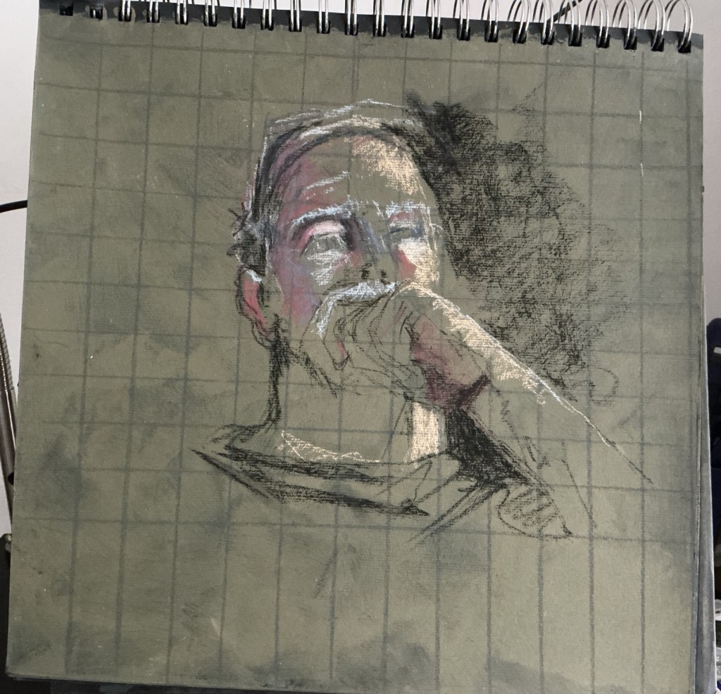I’m working on a few winter/spring paintings at the moment. This is a self portrait in progress from my own photo.